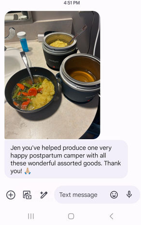 Growing, birthing, and caring for a baby is a transformative and vulnerable season of life. As humans, we are meant to be taken care of by a village of mothers, aunts, grandmothers, and friends during the first 40 days after birth. You deserve to be surrounded by a community to support and care for you!